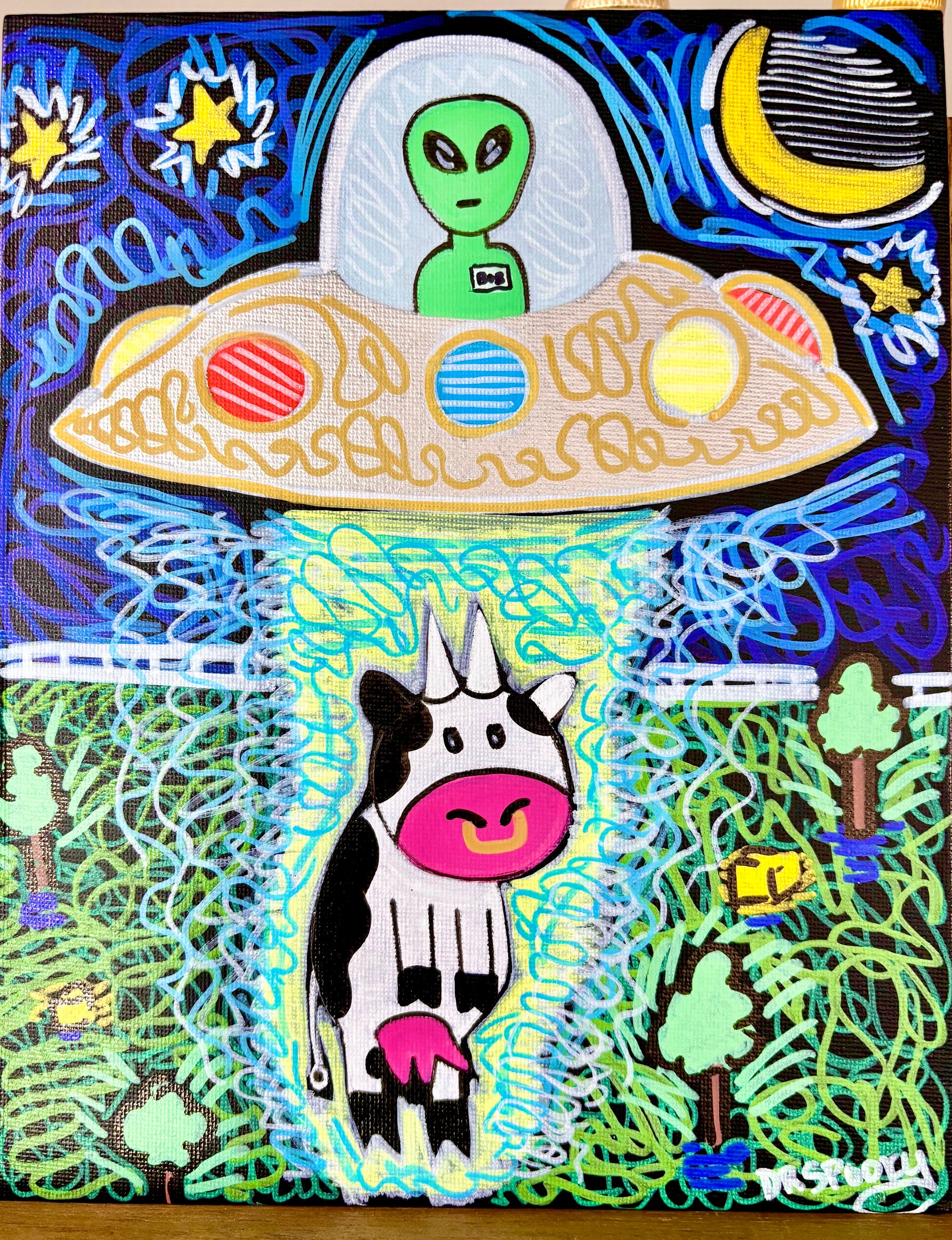 UFO Bob Abducts Cow Painting